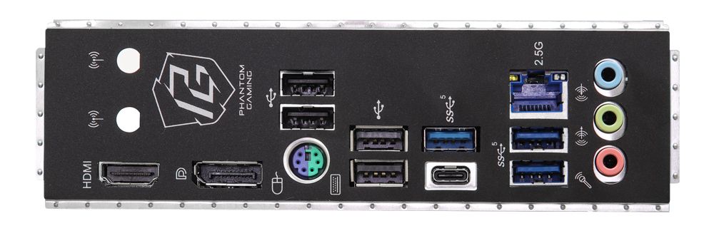 | Anschlüsse Rückseite: | - 2 x Antenna Mounting Points - 1 x PS/2 Mouse/Keyboard Port - 1 x HDMI Port - 1 x DisplayPort 1.4 - 1 x USB 3.2 Gen1 Type-C Port - 3 x USB 3.2 Gen1 Type-A Ports - 4 x USB 2.0 Ports - 1 x RJ-45 LAN Port - HD Audio Jacks: Line in / Front Speaker / Microphone |