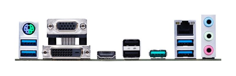 | Rückseite I/O Panel: | 1 x PS/2 keyboard/mouse combo port(s) 1 x DVI-D 1 x D-Sub 1 x HDMI 1 x LAN (RJ45) port(s) 1 x USB 3.2 Gen 2 (teal blue)Type-A, 4 x USB 3.2 Gen 1 (blue) Type-A 2 x USB 2.0 3 x Audio jack(s) |