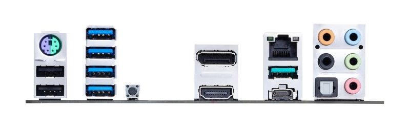 | Rückseite I/O Panel: | 1 x PS/2 keyboard/mouse combo port(s) 1 x DisplayPort 1 x HDMI 1 x LAN (2.5G) port(s) 2 x USB 3.2 Gen 2 (teal blue) (1 x Type-A+1 x USB Type-C®) 2 x USB 2.0 4 x USB 3.2 Gen 1 (blue) (one port can be switched to USB BIOS FlashBack™) 1 x Optical S/PDIF out 5 x Audio jack(s) 1 x BIOS FlashBack™ Button(s) |