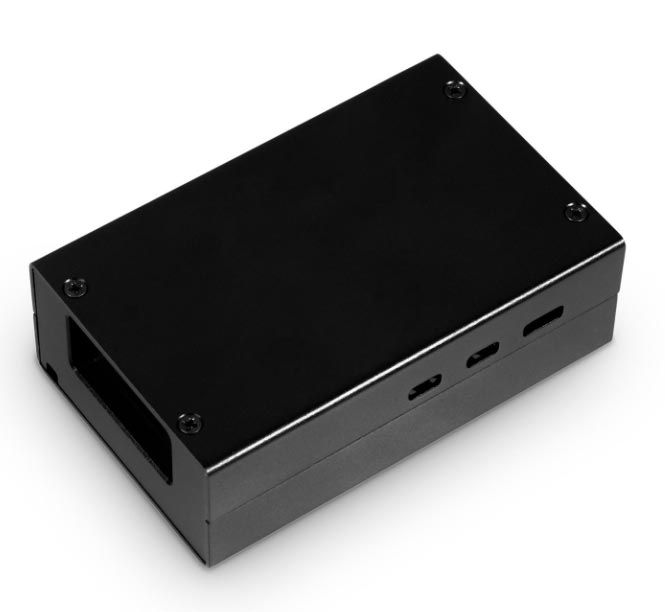 Dieses schwarze eloxierte Aluminiumgehäuse für den Raspberry Pi bietet Schutz und Stabilität. Für optimale Kühlung kann der offizielle Active Cooler (nicht im Lieferumfang enthalten) montiert werden.