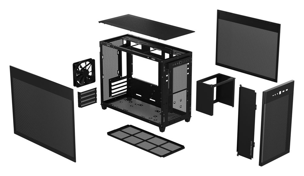 - Quasi-Filter Mesh Paneele: Das Mesh-Design mit über 57.000 präzisionsgefertigten 1,5 mm großen Löchern erhöht den Luftstrom und bietet eine hervorragende Sicht auf die Komponenten in deinem Build.
