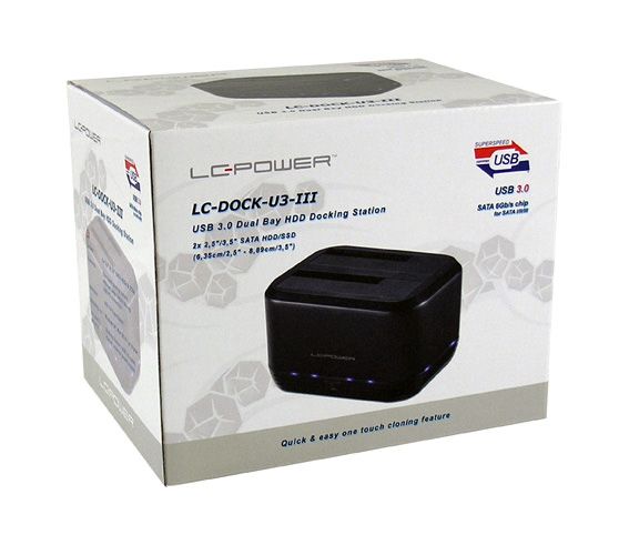 Produktinformationen "LC-Power LC-DOCK-U3-III Dockingstation, USB-B 3.0 2,5" und 3,5" SATA HDD/SSD, Klon-Funktion, Ein/Aus-Schalter"